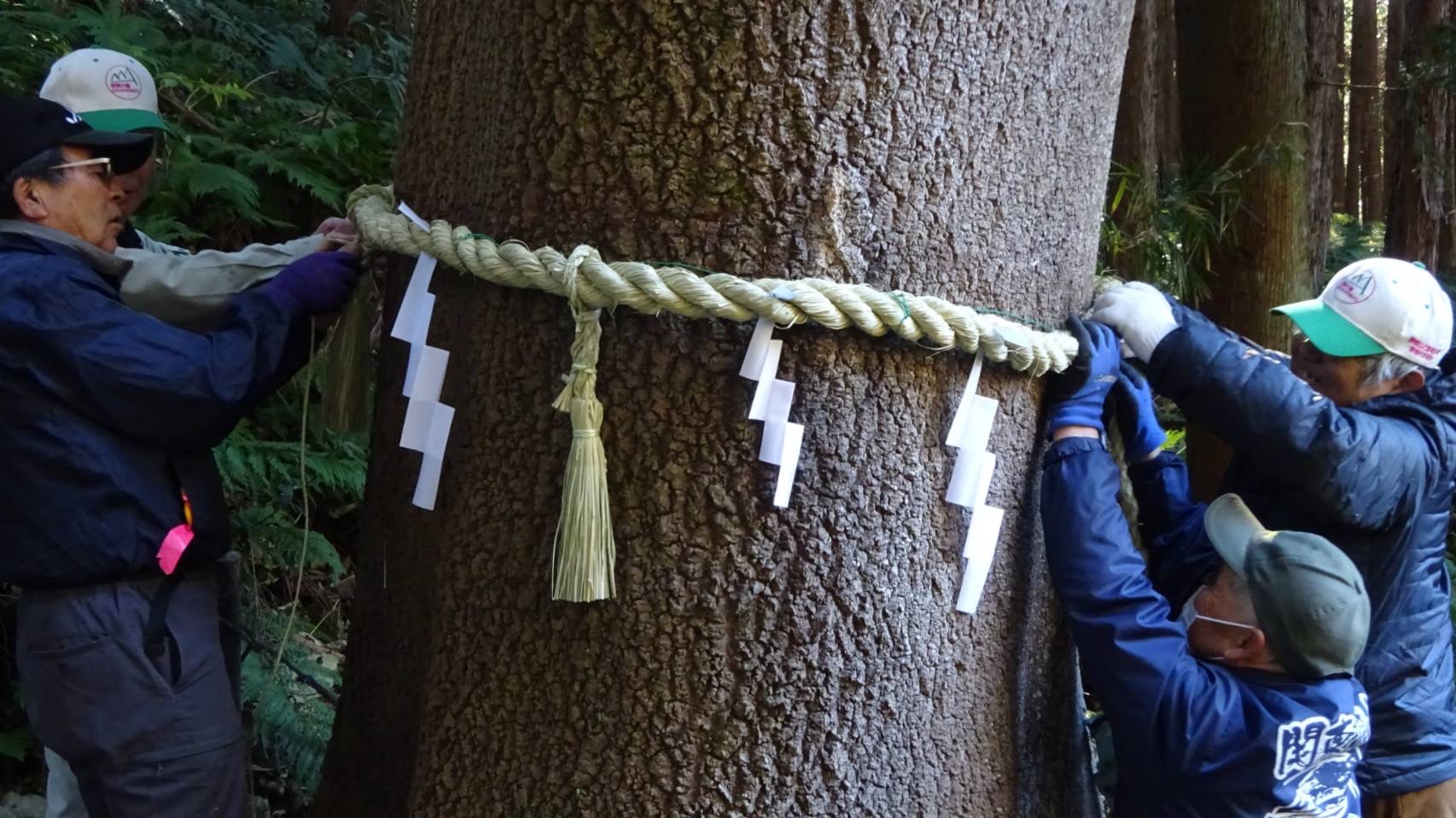 各名所の注連縄を新年に向けて交換しました。御前山の大開観音は今回新たに注連縄を飾りました。