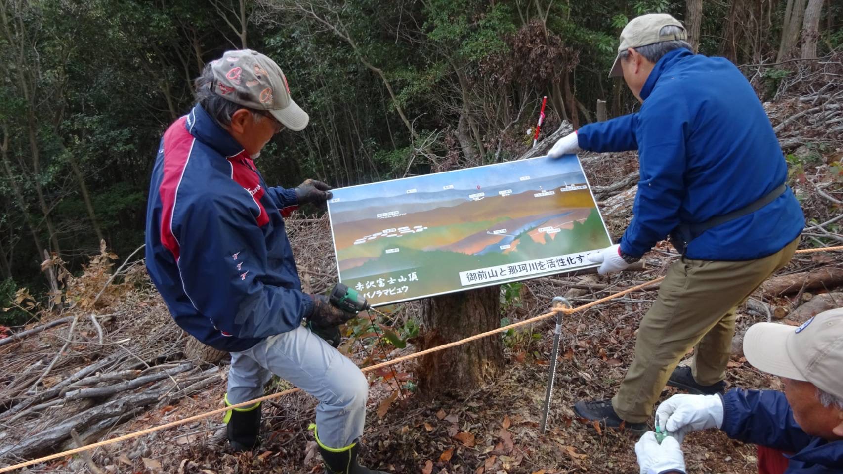 小林真澄さん作成の2種類の看板を東側の展望所に設置しました。